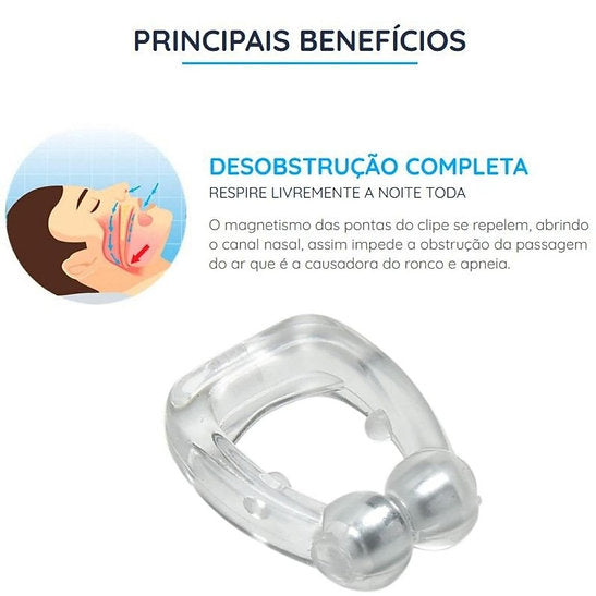 Pensando nesse problema, foi criado o Clipe Dilatador Nasal, para tornar sua respiração mais suave e seu sono mais Tranquilo! Trata-se de uma tecnologia nova e muito eficiente para o tratamento de ronco e apneia do sono.