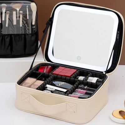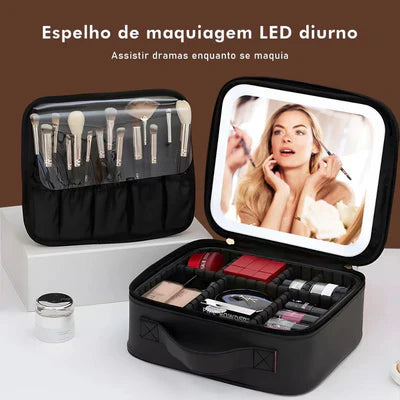 - 1 Necessaire de Couro com Espelho LED e Divisões Personalizáveis